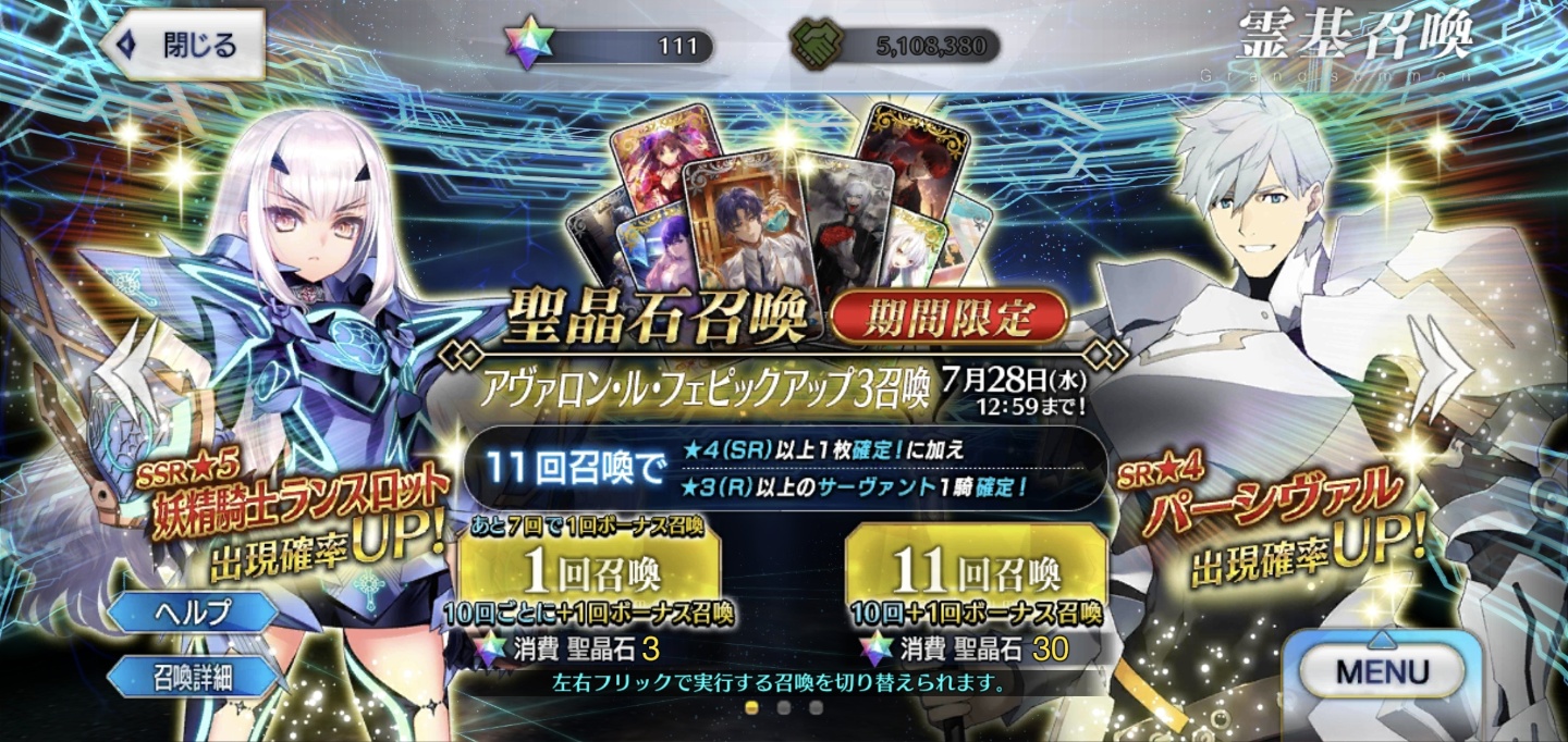 페그오, 아발론 르 페이 요정기사 랜슬롯 소환!
