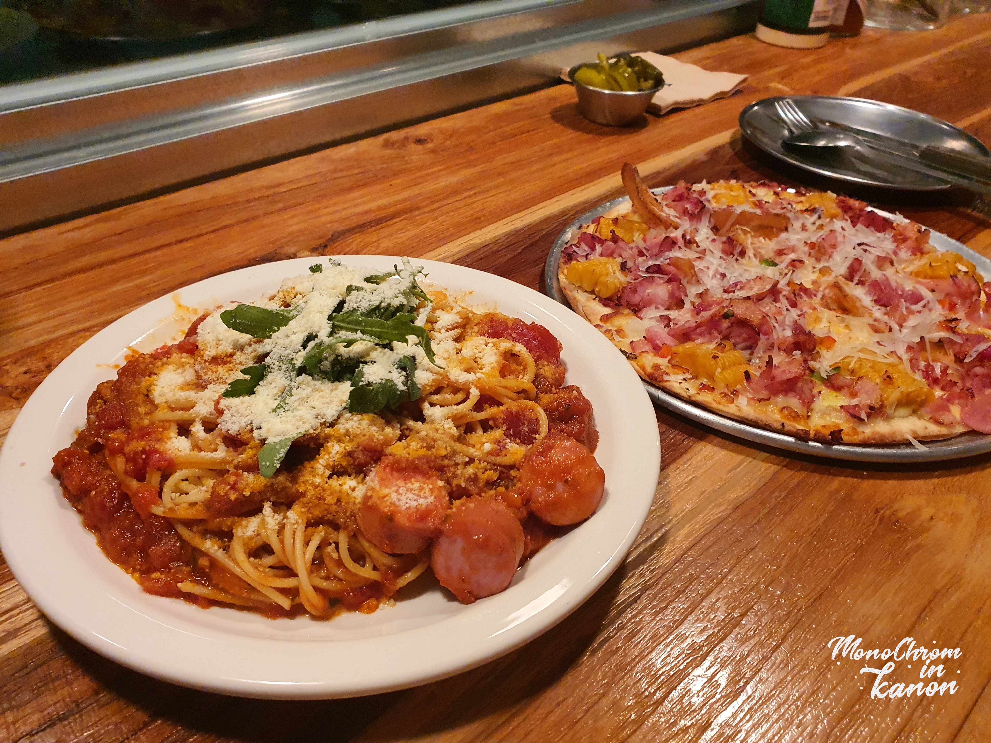 토마토 파스타의 소스를 피자에 싸 먹어도 맛있었습니다.