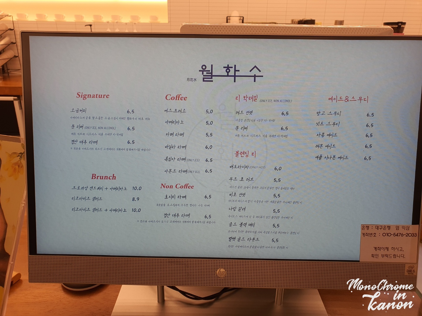 경산 감못 근처 카페 월화수 메뉴판