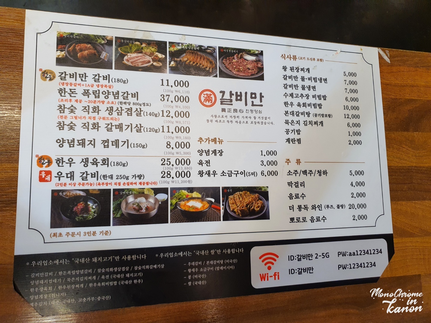 현풍 돼지갈비 맛집 갈비만 현풍테크노폴리스 점 메뉴판