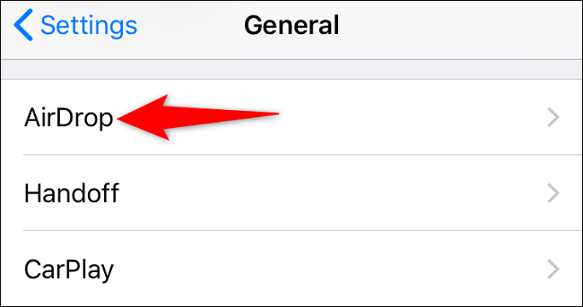 설정에서 [General]> [ AirDrop ]를 선택합니다.