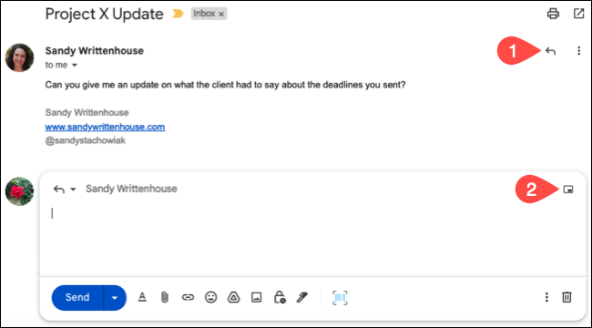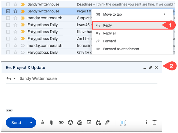 Gmail에서는 이메일이 회신에 첨부되어 수신자가 직접 읽을 수 있도록 할 수 있습니다.