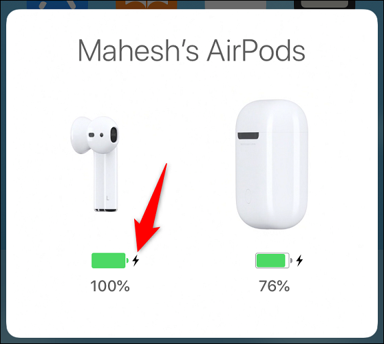 이러한 레벨 옆에 AirPod가 실제로 충전 중인 경우 깜박이는 표시등 아이콘이 표시됩니다.