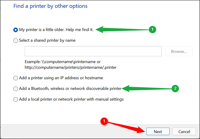 「Help me find it」(찾아 주세요).네트워크 또는 다른 무선 프린터인 경우