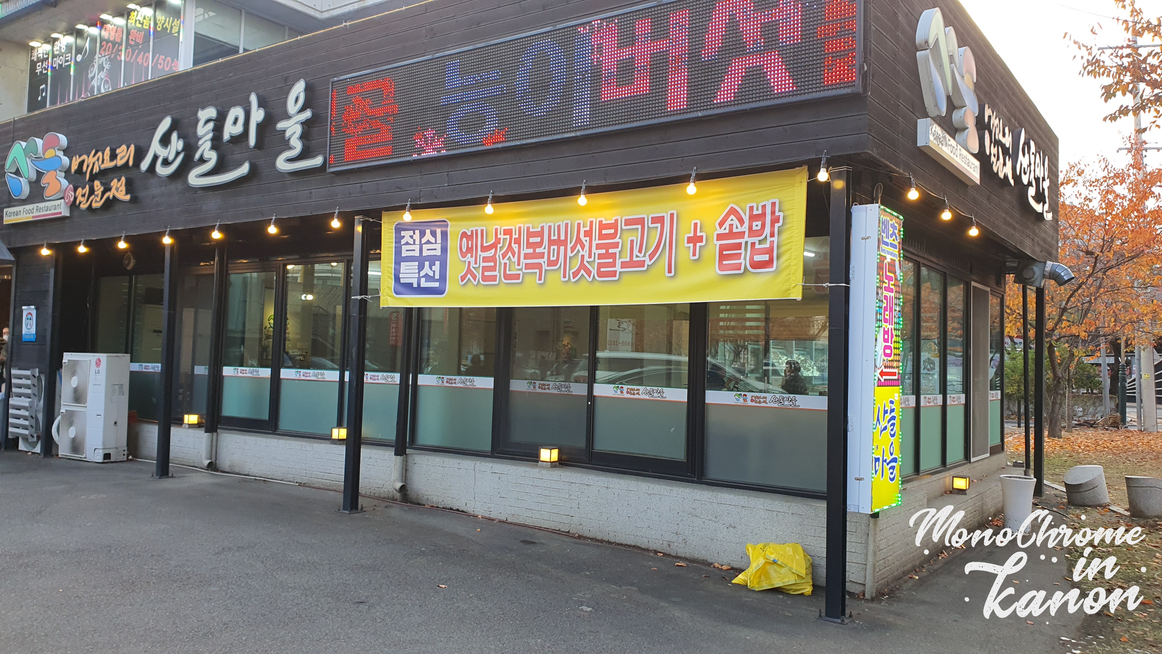 산들마을이라는 곳에서 버섯 불고기 전골을 맛보기로 했습니다.