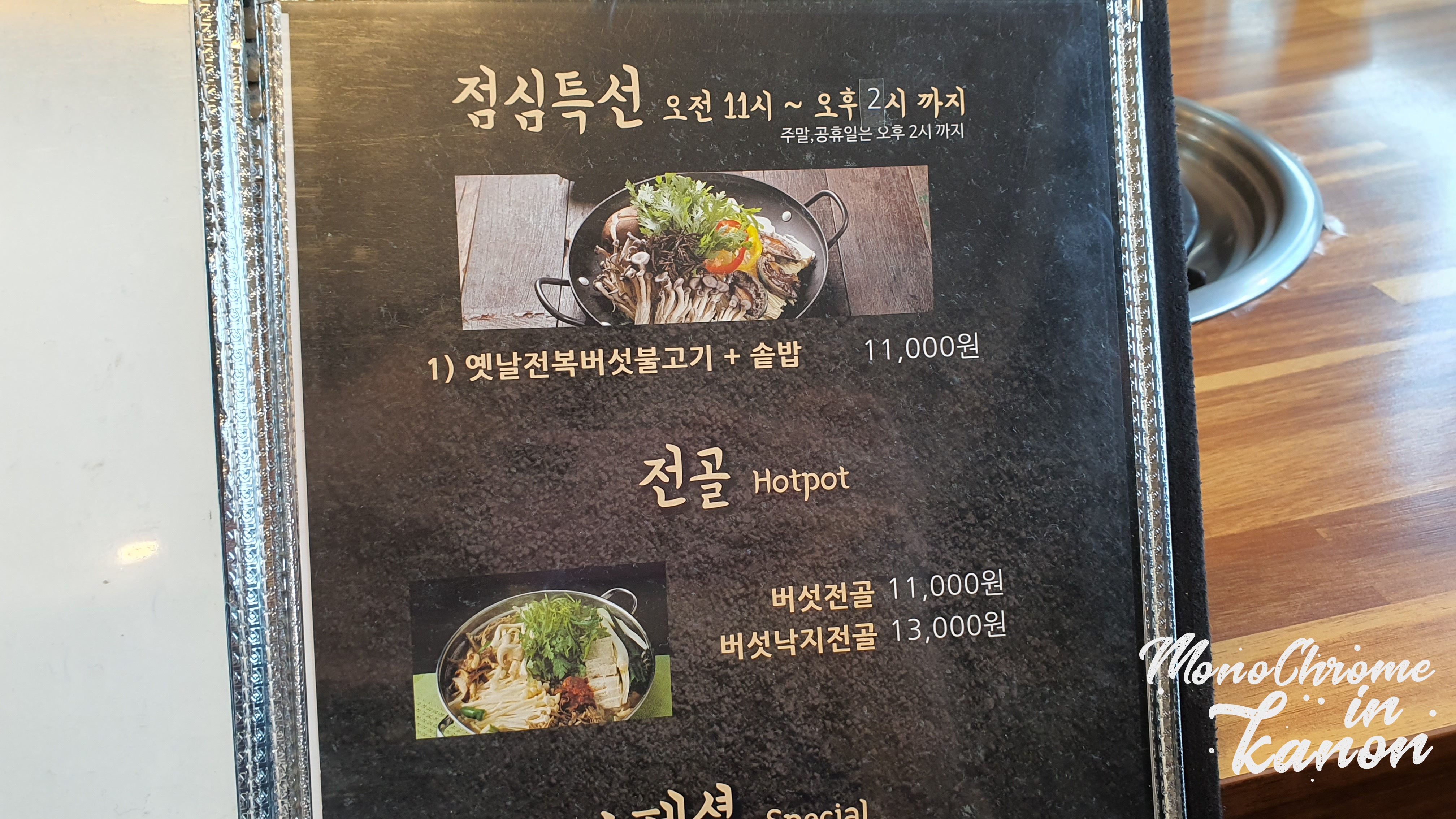 향긋한 버섯이 메인인 전골 메뉴들이 듬뿍 있습니다.