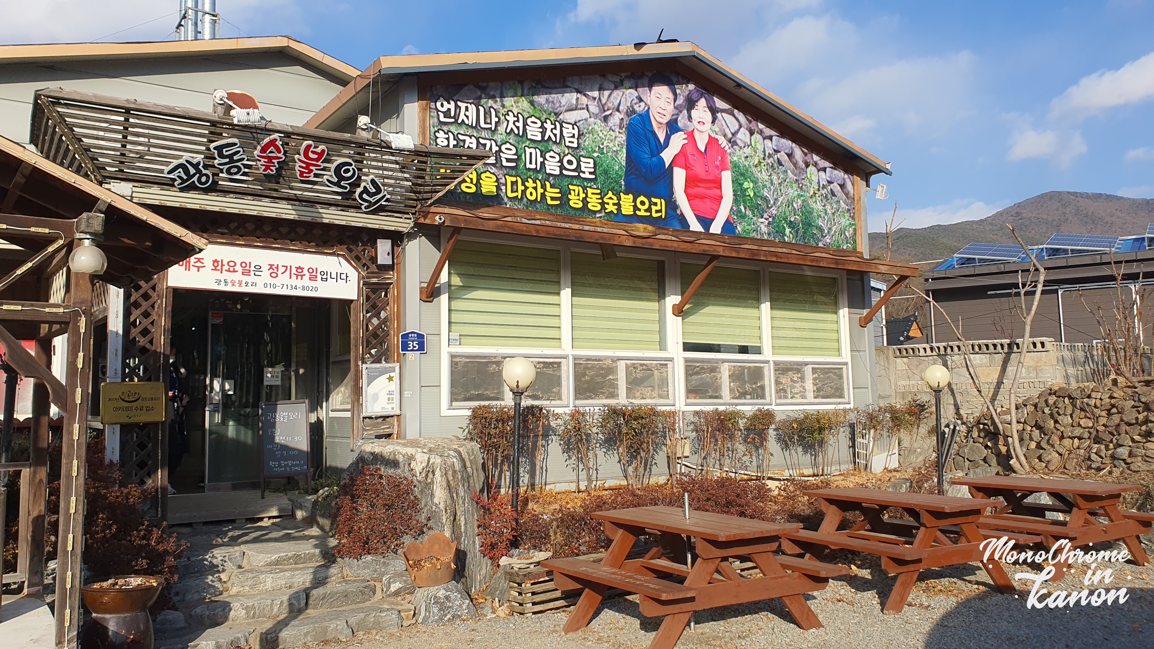 광동숯불오리는 동명지 수변공원 근처에 있는