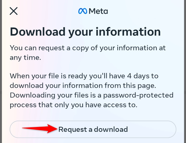 화면에 표시된 지침에 따라 인스타그램에 데이터 다운로드 요청을 완료합니다.