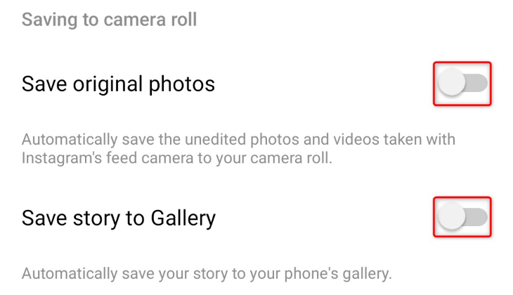 앱에서 스토리를 저장하지 않으려면 "스토리를 갤러리에 저장" 옵션도 비활성화합니다.