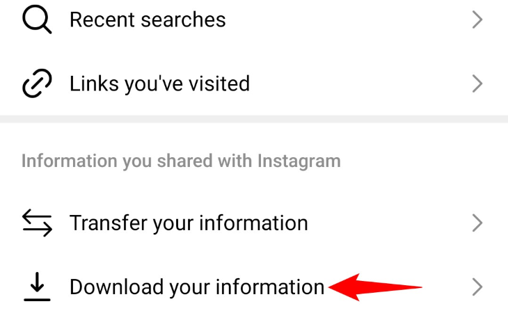 모든 게시물(사진 및 동영상 포함)을 저장하려면 인스타그램에서 데이터 다운로드를 요청합니다.