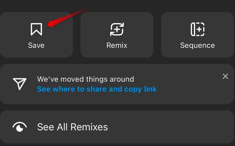 릴의 오른쪽 하단 모서리에 있는 세 개의 가로 점을 두드리며 "저장"을 누릅니다.
