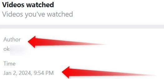 이 파일에는 시청한 비디오(릴 포함)를 게시한 계정 이름 목록과 해당 날짜 및 시간이 표시됩니다.