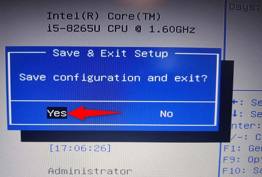키보드의 F10 키를 눌러 BIOS 설정을 저장합니다.