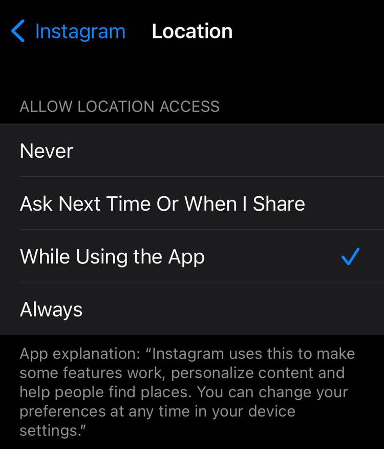 위치 공유를 끄는 것은 인스타그램이 사용자의 위치를 어느 정도 추적하고