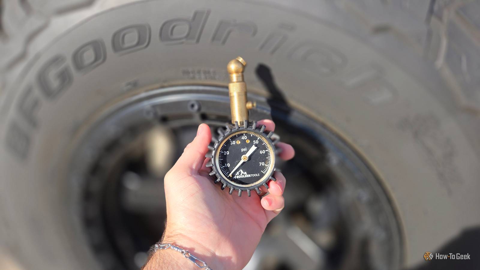 → 운전석 도어 프레임, 연료 주입구, 매뉴얼에서 제조사 권장 PSI 확인. - 압력 게이지로 측정