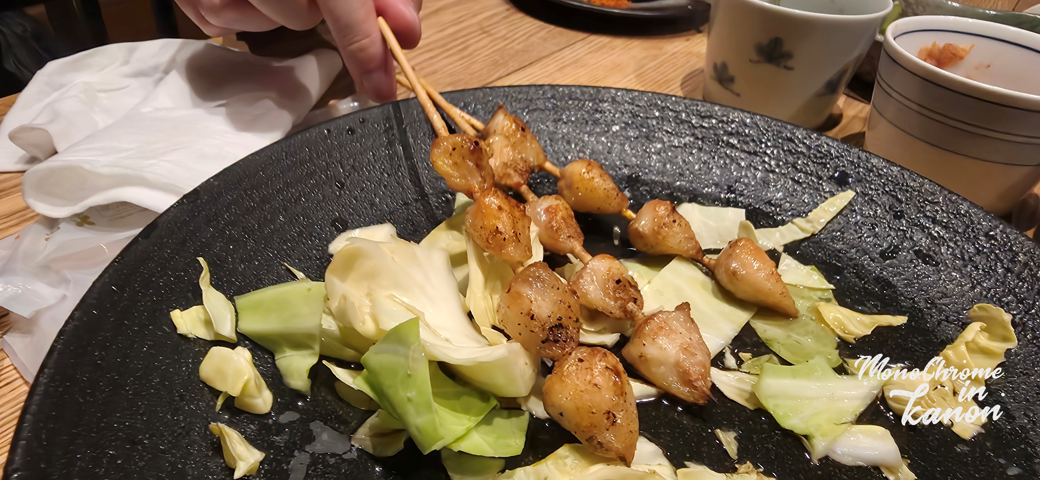이건 닭 똥집! 한국에서 먹은 똥집과는 다릅니다! 육즙이 팡~ 하고 터져나오고