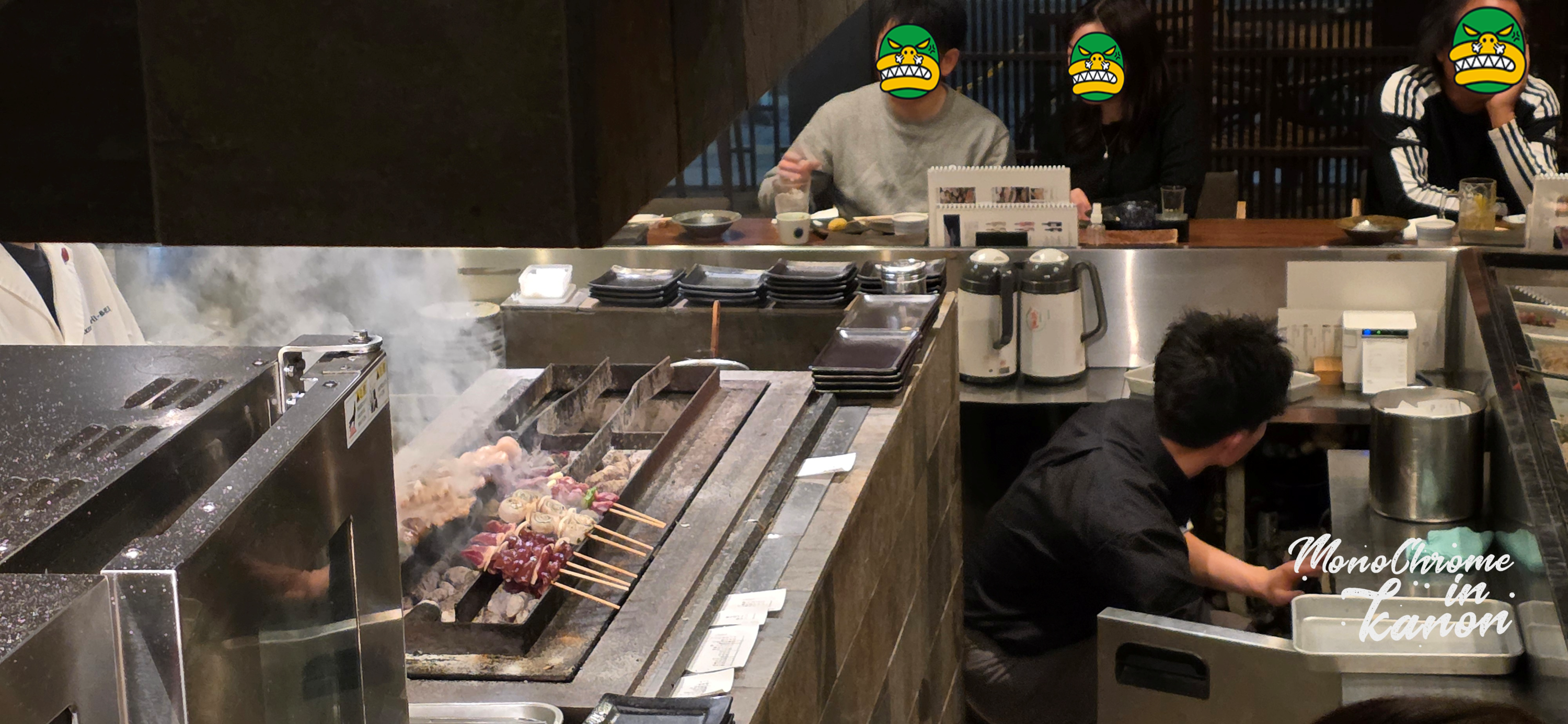 2층구조로서 아래로 야키토리들이 구워지는 모습도 감상이 가능하며,