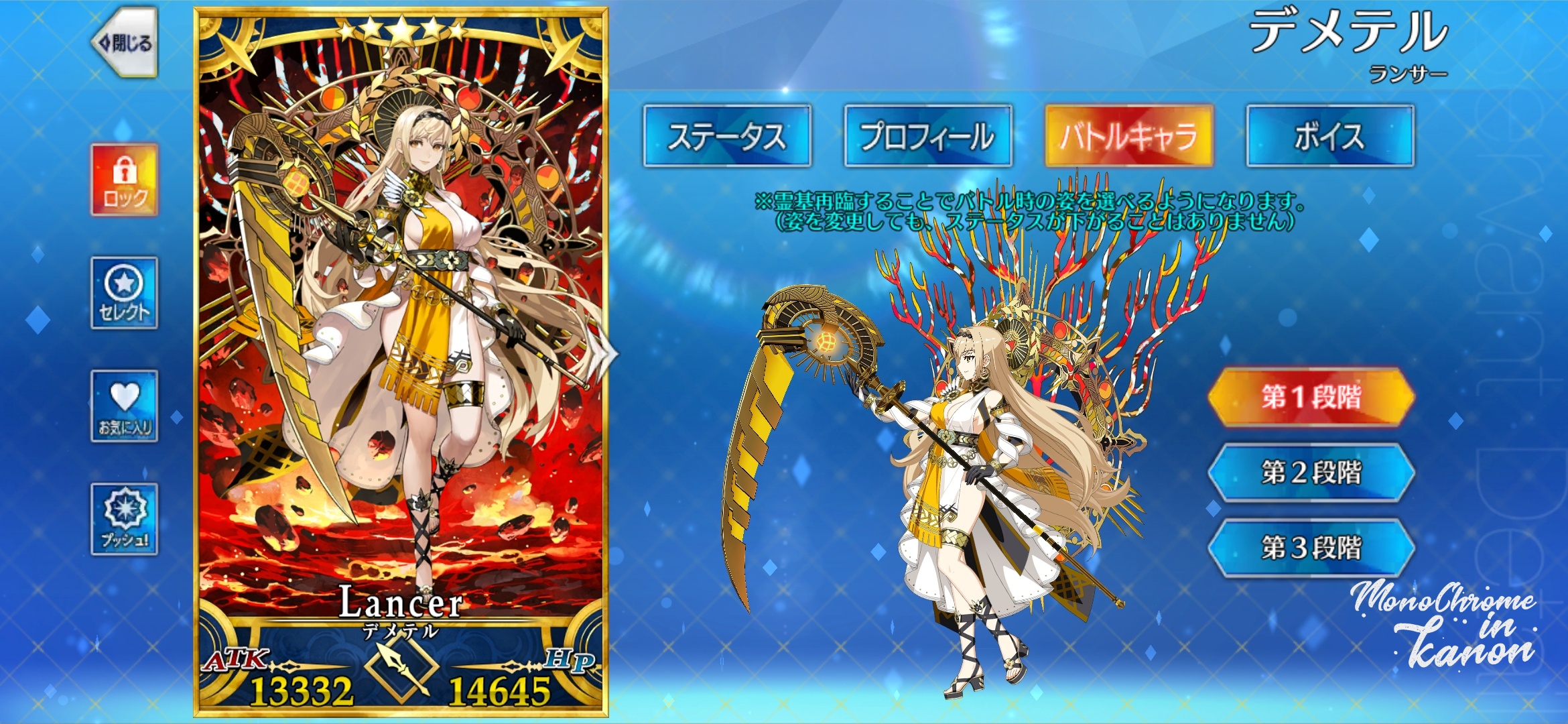 미리 올림포스의 12주신 중 하나인 데메테르가 랜서로 실장된다고 하여,
